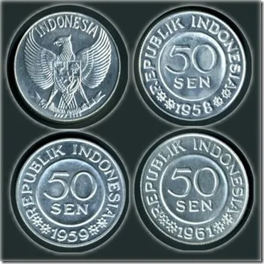 * Sen, seperseratus rupiah (ada koin pecahan satu dan lima sen)