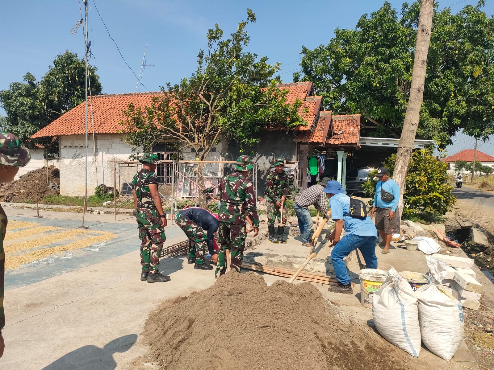 Indramayu – Dalam rangka mendukung program TNI Manunggal Membangun Desa (TMMD) ke-126, Sertu Naviga bersama dua orang Anggota Satgas TMMD melaksanakan pembangunan Pos Keamanan Lingkungan (Poskamling) di Desa Longok, Kecamatan Sliyeg, Kabupaten Indramayu, Rabu (09/10/2025).