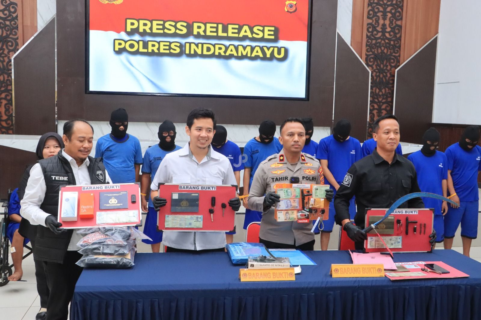 “Dalam periode tersebut terdapat tujuh kejadian di wilayah hukum Polres Indramayu, antara lain di Polsek Karangampel, Widasari, Anjatan, Gantar, dan Indramayu. Dari hasil penyelidikan, kami amankan total 14 tersangka,” ujar Kompol Tahir didampingi Kasat Reskrim Polres Indramayu AKP Muchammad Arwin Bachar dan Kasie Humas Polres Indramayu AKP Tarno saat konferensi pers di Mapolres Indramayu, Senin (13/10/2025).